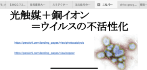 毎日同じようなお天気ですね。来週末まで曇りか雨なので梅雨明けがみえません( ゚Д゚) 今日は、日曜日に引渡し予定の岩舟町のT様邸の抗菌を行いました。 「光触媒+銅イオン」の材料でアルコール等との違いは、銅イオンが持続性 […]