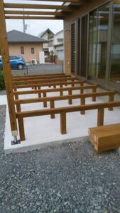 今日は、蒸し暑くなりました。明日は、雨で気温が下がるようなので体調管理が大変ですね( ゚Д゚) こちらは、浅沼町のS様邸です。 昨日パーゴラ部分が終わり~今日は、デッキ部分の工事がはじまりました。 外部も段々良くなり […]