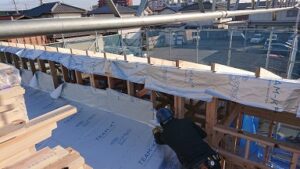 今日は、風があり寒い一日となりました。 午前中は、天神町のA様邸現場の屋根の確認作業をしてきました。 野地が出来てる大きい屋根部分からルーフィングをしています。段取りバッチリ! 屋根が大きいのでこれから野地板を貼る場所も […]