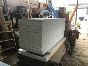 室内では、「タツミー」棟梁が棚等の仕事をしています。